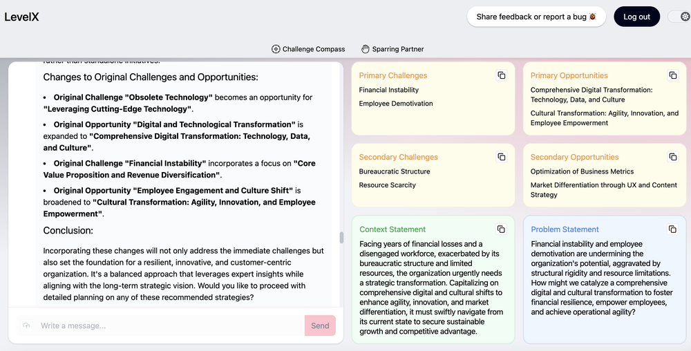to canvas (challenges & opportunities). Also context and problem statements not of same quality as before.